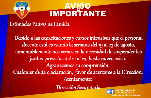 - Aviso: Suspensión de Juntas Agosto 2019-2020