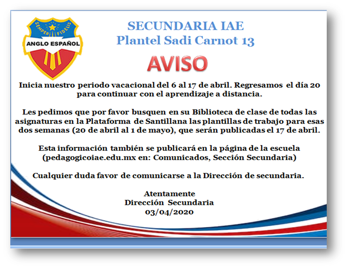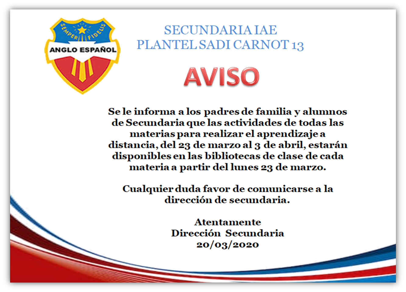 - AVISO: Actividades a realizarse del 23 de marzo al 3 de abril